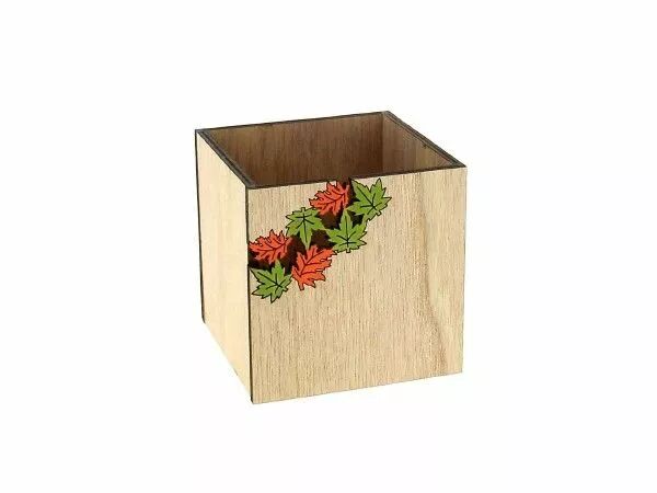 Accueil > Contenants fleuriste > Cache-pot de fleur > Cache pot osier > Cache Pot Bois Feuille 8,5x8,5 H9 Naturel