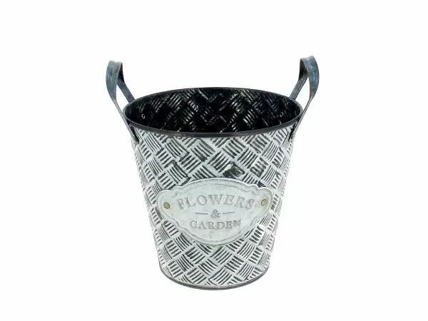 Cache Pot Zinc Flowers D15 H15 Blanchi