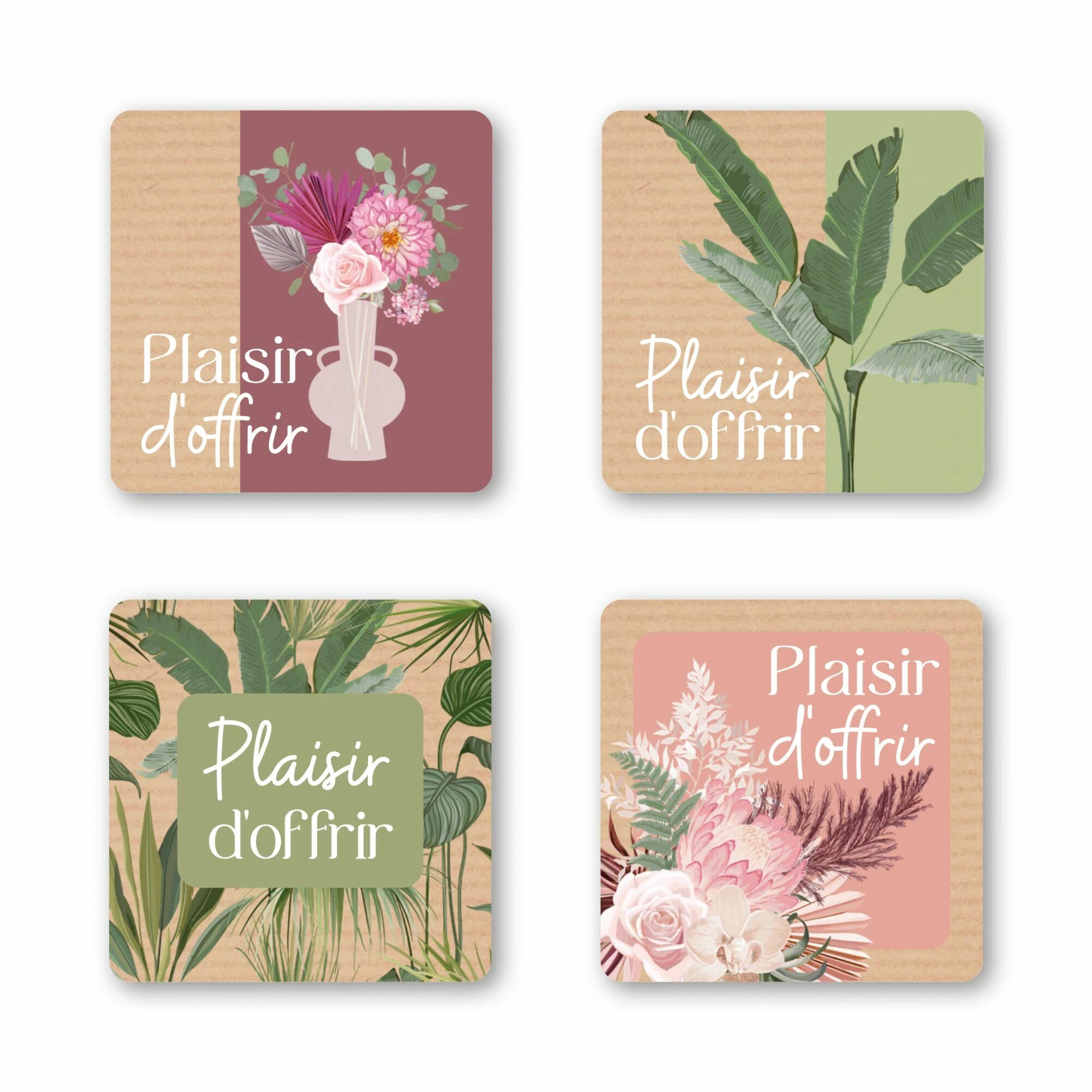 Accueil > Accessoires fleuristes > Cartes de voeux et étiquettes > Etiquettes fleuriste > Etiquettes Voeux Quatro Plaisir d'offrir" ( 4 x 125 )