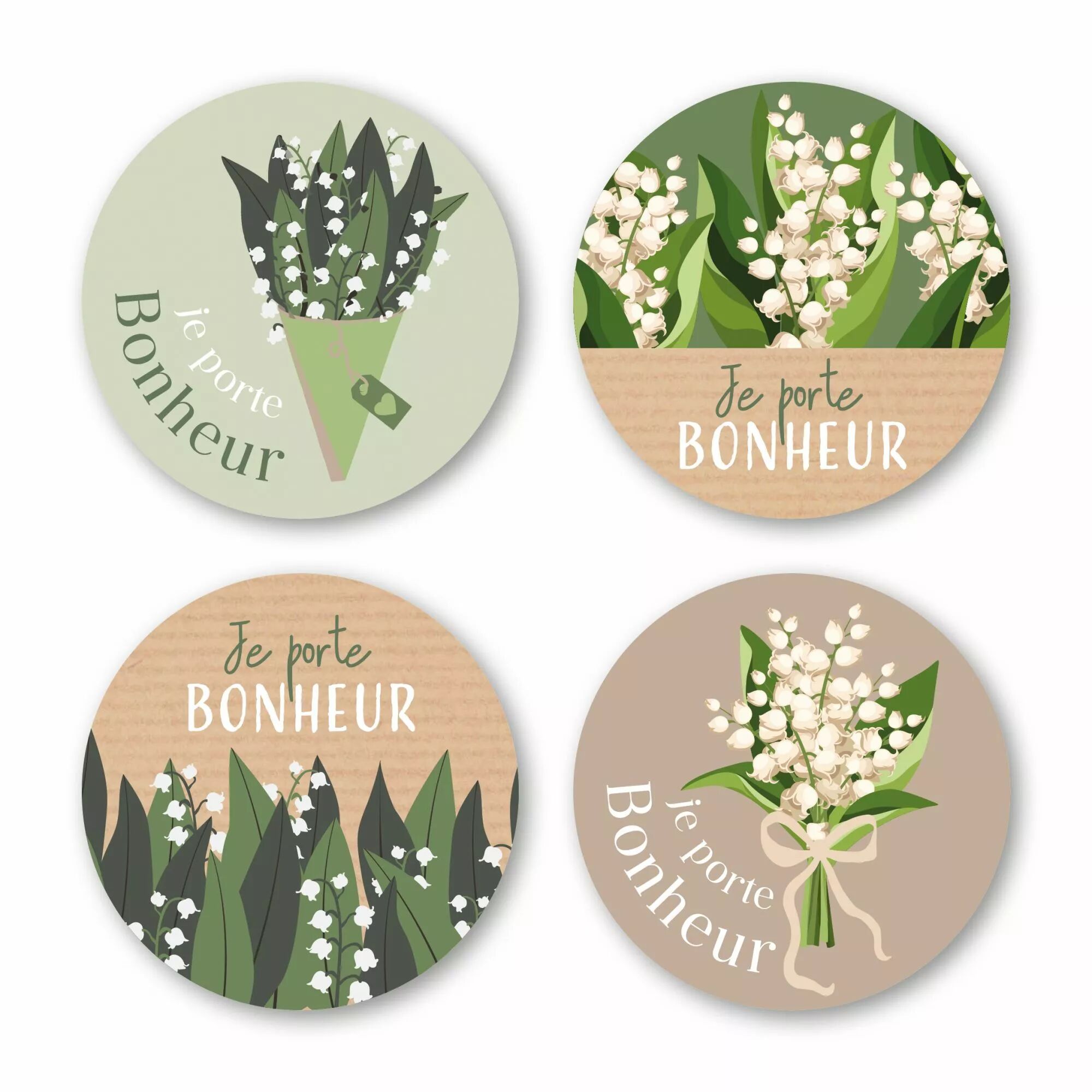 Accueil > Évènements du moment > 1er Mai > Décoration 1er mai > Etiquettes Voeux Quatro"Je porte bonheur" ( 4 x 125 )