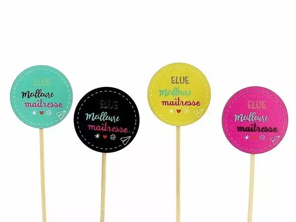 Accueil > Évènements du moment > Cadeau maîtresse > Décoration cadeau maîtresse > Pic Bois "Elue meilleure maitresse" D6 H15 ass ( x 12 )