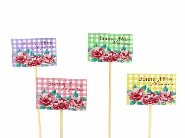 Accueil > Décoration > Pics fleurs > Pic Bois " Mamie " 7,5x5 H25 ( x 12 )
