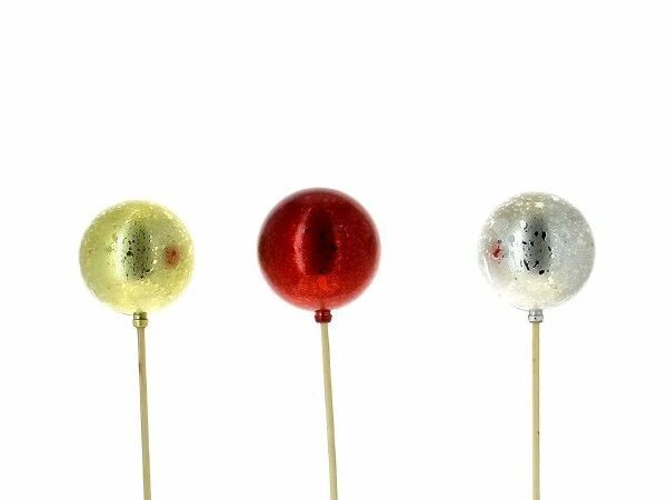 Boules sur pic pour agrémenter vos compositions. 3 couleurs assorties.