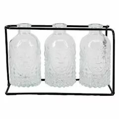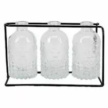 Support en métal accompagné de 3 bouteilles en verre